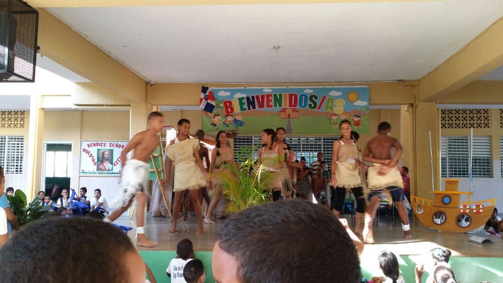 LOS ESTUDIANTES DE DIFERENTE GRADO CELEBRAN EL DÍA DE LA RAZA O ENCUENTRO ENTRE DOS CULTURA CON LA PRESENTACIÓN DE UN DRAMA CRONOLÓGICO EXPLICANDO LO SUCEDIDO EN ESA ÉPOCA